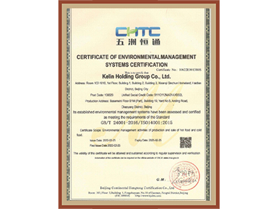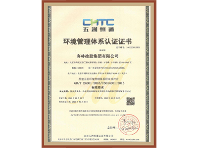 • 環境管理體系認證證書